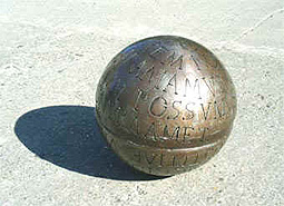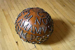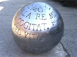 homo liber, Stahlkugel, gebürstet und lackiert, Ø ca 70 cm, 2005. HOMO LIBER DE NULLA RE MINUS QUAM DE MORTE COGITAT, ET EJUS SAPIENTIA NON MORTIS SED VITAE COGITATIO EST. Der freie Mensch denkt an nichts weniger als an den Tod, und seine Weisheit ist ein Nachdenken über das Leben, nicht über den Tod.