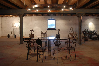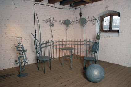 VOR DER Kulturspeicher Dörenthe, 2009 Die retrospektive Ausstellung zeigt im Kulturspeicher zwei Werkgruppen: Environments mit Möbelobjekten aus Nutzeisen von 1992 bis 2002 und Arbeiten des philosophischen Projekts von 2002 bis 2009 – Philosophische Sätze in Stahl. Der erste Teil der Ausstellung im alten Raum des Speichers ist eine letzte Präsentation der Environment-Objekte aus Nutzeisen vor deren Transformation. Danach werden sie in einem maschinellen Umformungsprozess gestaucht, gepresst und zerschnitten zu neuen, dichten und schweren Stahlskulpturen. Im neuen Raum des Speichers ist als zweiter Teil eine Zusammenstellung der Stahlobjekte aus verschiedenen philosophischen Projekten der letzten Jahre zu sehen.