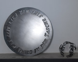 Georg Simmel: „Mit dem Gelde in der Tasche sind wir frei“, Stahlscheibe Ø 120cm , Kugel Ø 45 cm, 2009
