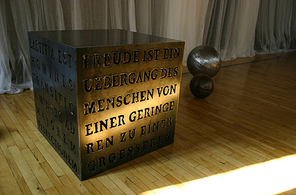 Philosophische Sätze in Stahl und andere Objekte ... Caute! Spinoza-Grenzgänge Das Projekt, in dem verschiedene künstlerische und wissenschaftliche Disziplinen zusammentreffen, beleuchtet Leben und Werk des Philosophen Baruch de Spinoza in vielen Facetten.